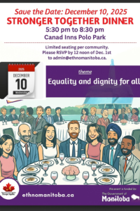 RSVP: Please confirm attendance by December 1st to admin@ethnomanitoba.ca as seating is limited.